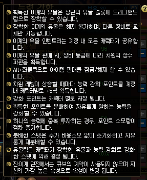 해당 시스템은 캐릭터 단위가 아닌 계정 단위로 적용 됩니다.