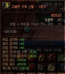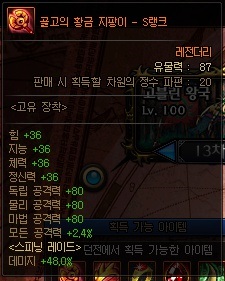 이때, 105레벨 에픽 무기는 'S랭크'를 찍어야 하는 것이