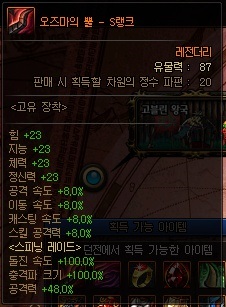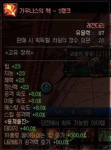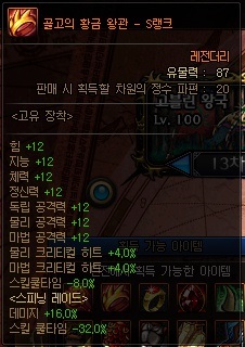 고유 유물 정보 (S랭크 기준) *각 던전에서만 획득 가능, 던전 내 모든 몬스터가 드랍 *스킬 강화는 각 전직마다 모두 상이하므로 직접 확인 바람. | ||