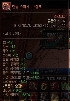 유물 레어리티 정보 *모든 유물이 동일함 | |