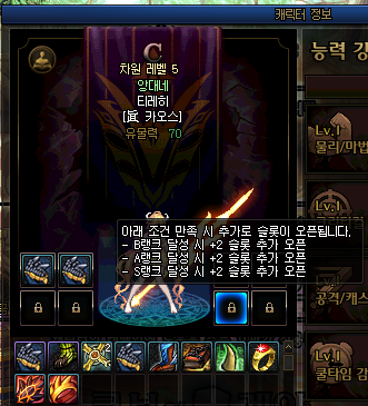 유물은 랭크가 올라갈 때마다 슬롯이 추가 오픈되어