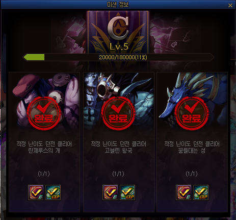 *차원 레벨 경험치는 일일 미션을 통해서만 쌓을 수 있습니다.