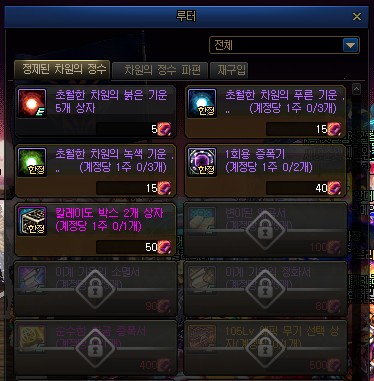 105레벨 에픽 무기 상자 500 *1 / 순황증 400 *1