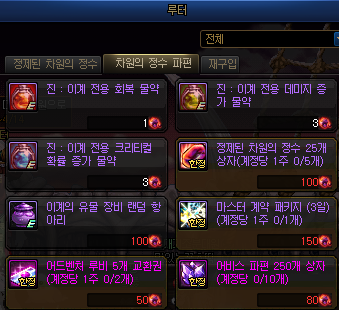 정제된 차원의 정수를 사거나 유물 항아리를 개봉할 수 있는 등