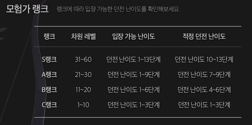 S랭크에 가까워질수록 고단계 던전을 깨야함에 따라서