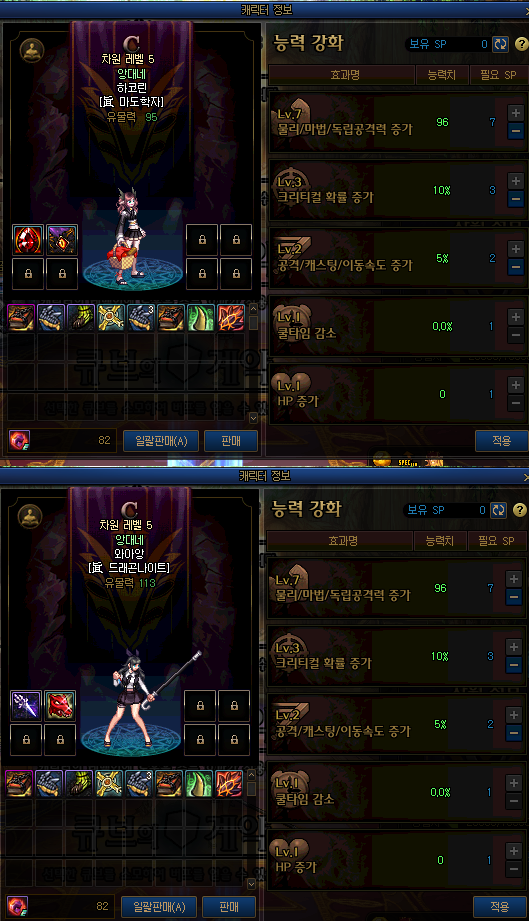 따라서 해야하는 적정 던전 단계가 다릅니다.