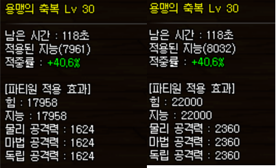 50렙까지 성장했을때 기준 150 + 28 = 178의 버프력 차이가 나겠군요.