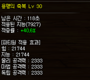 단순계산으로 버프력 +100당 힘지 38 물마독 7이 오른다고 볼 수 있겠습니다.