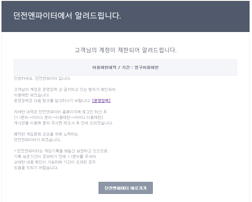 너무 힘드네요 정말 쏟아부은 돈과 시간은 대체 누가 보상해줄 것이며 풀리더라도 그동안 못받은 보상과 아이템들, 게임내 재화는