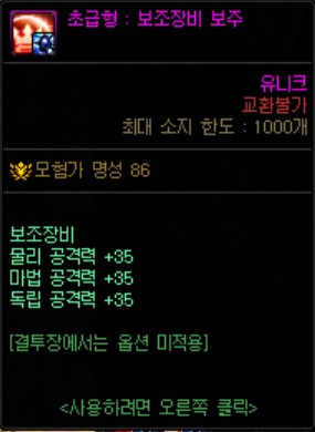 * 상점에서 구할 수 있는 보주 보다 한 단계 아래입니다.