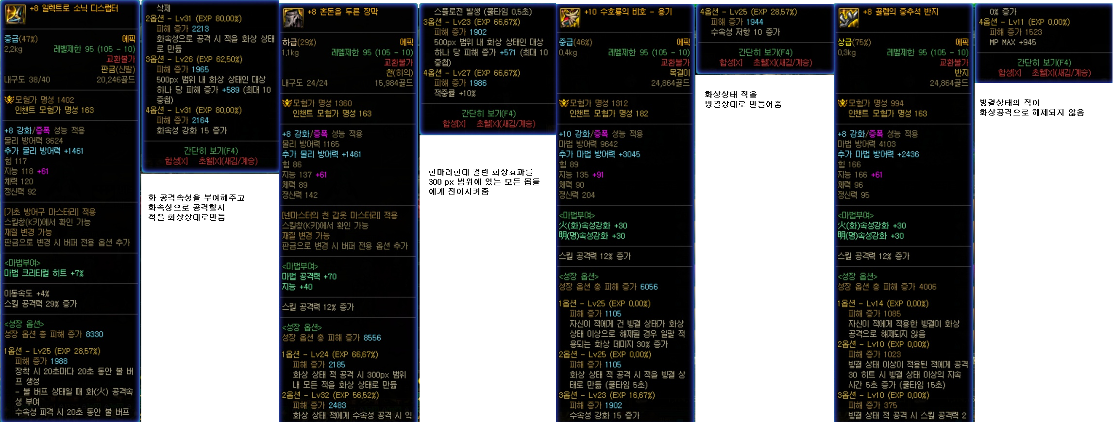 코어 장비들만 착용 후, 나머지 장비들은 유틸성 장비를 착용하시거나 스킬 공격력을 올려주는 장비들을 착용하시면 딜에 도움이 될 것입니다.