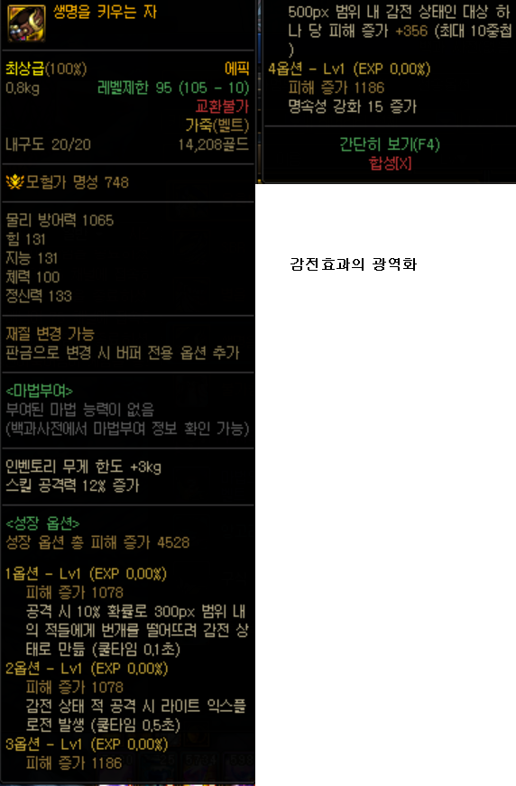 생명을 키우는 자 의 옵션으로 범위내의 적을 감전효과로 만들어 추가 상태이상을 부여할 수 있습니다.