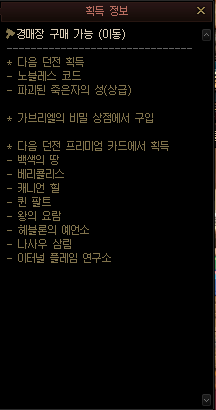 습득 방법은 던전과 경매장 구입이 있습니다.