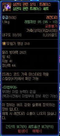 세트 옵션을 보면 짙은 심연의 편린 장비가 세트에 추가되있지요.