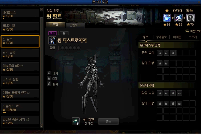 몬스터 등급을 상승 시키기 위해서는 등급에 맞는 파편을 사용해야 합니다.