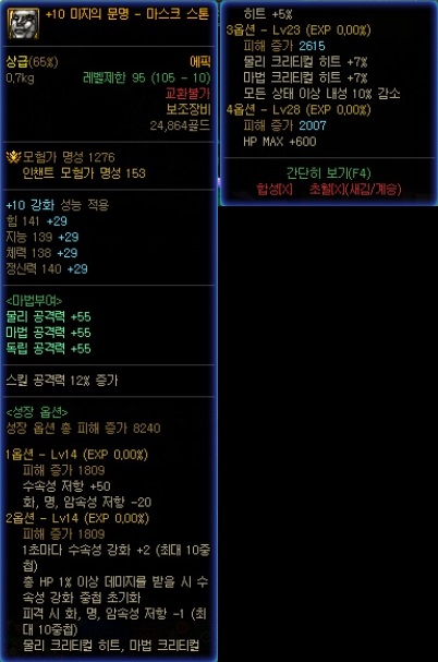 팔찌 : MP 80% 이상 쿨타임 회복 속도 30%,크리티컬 30%