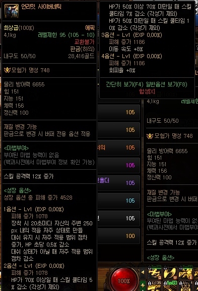 5%스킬쿨타임감소와 1옵션에 있는 영혼검으로 인해서