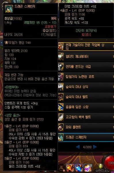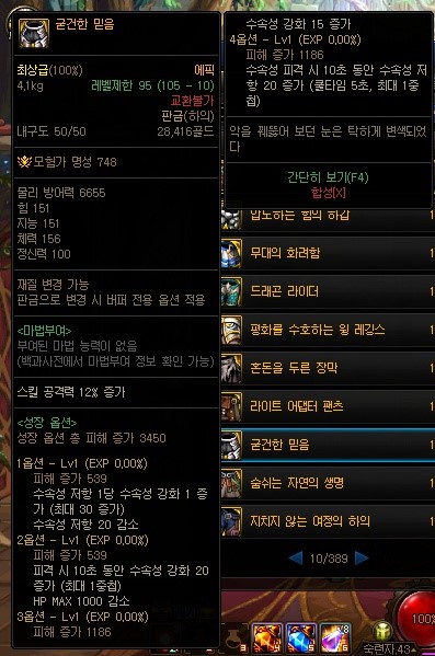 40렙이상 스킬 사용시 수속성 저항 수치가 증가하는 옵션을 가지고있습니다.
