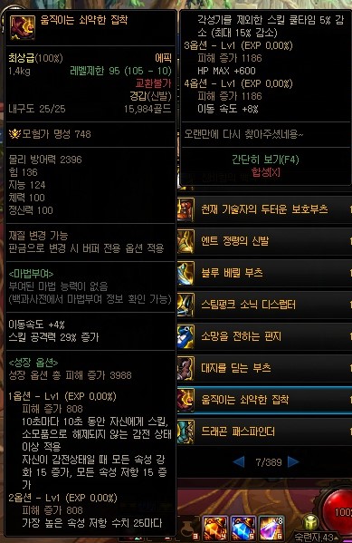 던전 입장시 팔찌 옵션상 무조건 피해증가량이 +4298옵션으로적용됩니다.