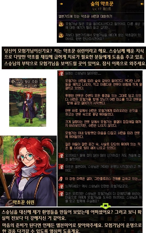 제자인 약초꾼 쉬린과 만나고, 쉬린이 모험가를 강해지게끔 돕겠다는 이야기 입니다.