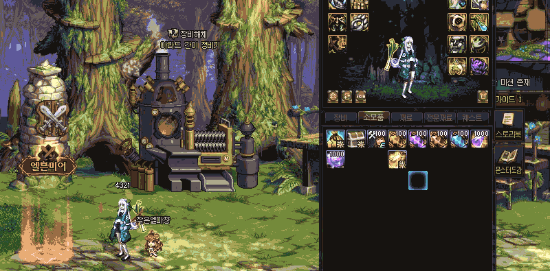 엘븐미어 레볼루션 : 무기를 받고 근원을 삼키는 무기로 업그레이드 하는 모습