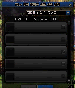 65레벨 에픽 특수장비(마법석) 상자 | 70레벨 에픽 방어구 세트 선택 상자 |
