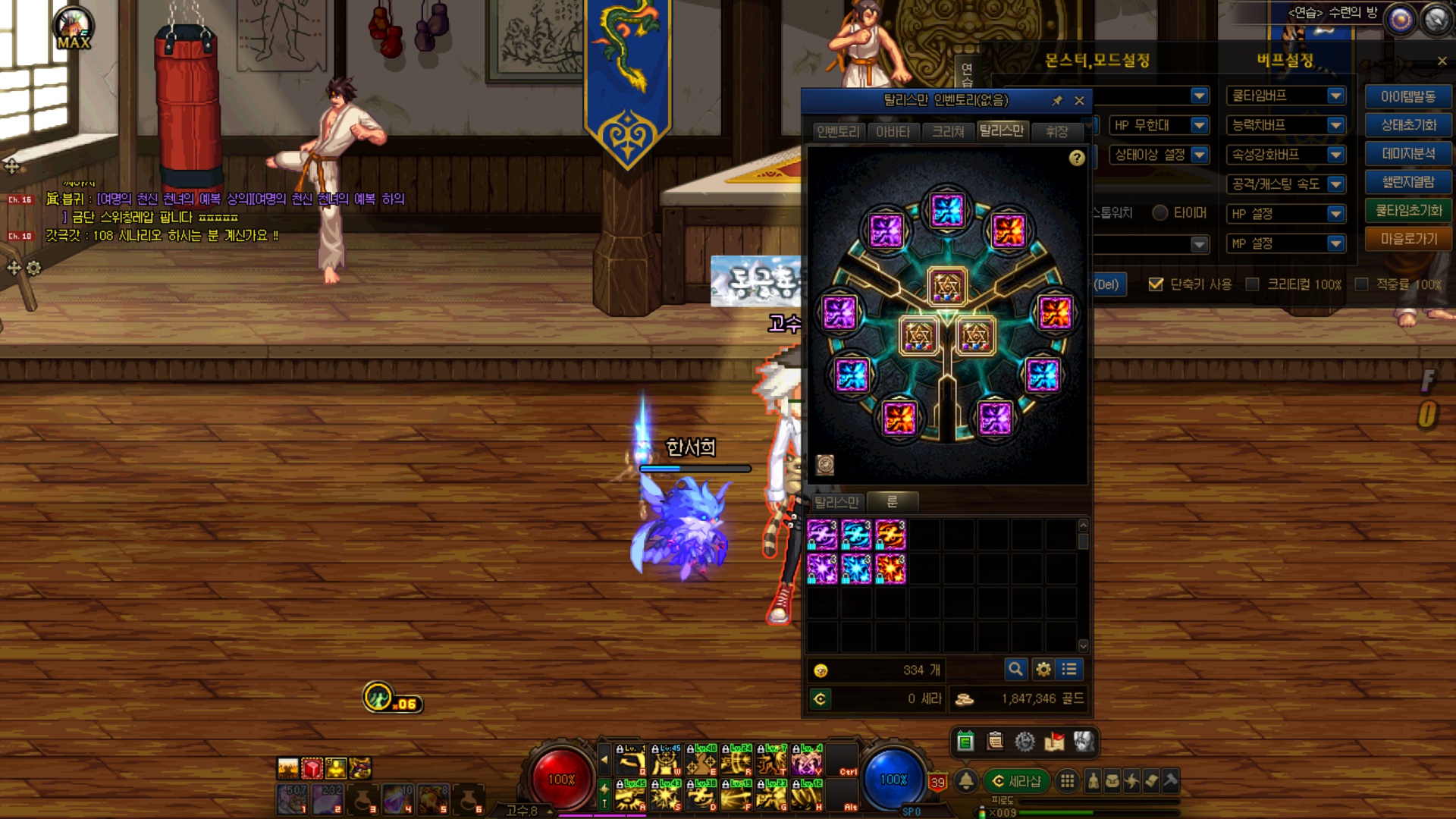 상의 : 기구 -> 블루베릴 커스텀픽(화상데미지 30퍼증가옵션)