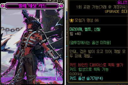 종결 아바타는 선택옵션이 힘으로 되어있는 레어 무기 클론 아바타[75Lv]를 구매해주세요.