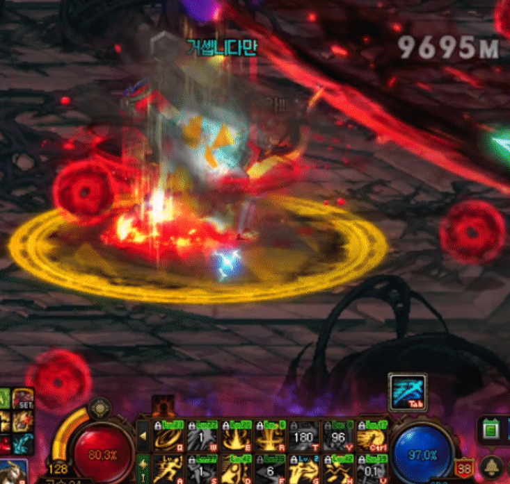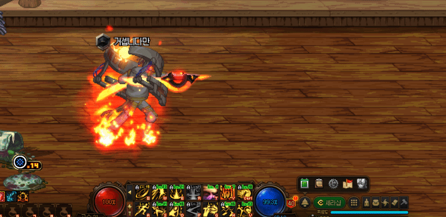 화염의 각과 권투 글러브를 통해 남들보다 훨씬높은 쿨감으로 스킬을 퍼붓는 캐릭터라고 할 수 있겠습니다.