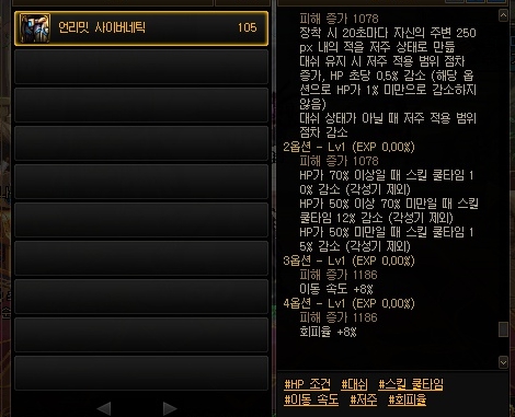 이걸 클릭하면 왼편에 버프강화 장비들을 적용