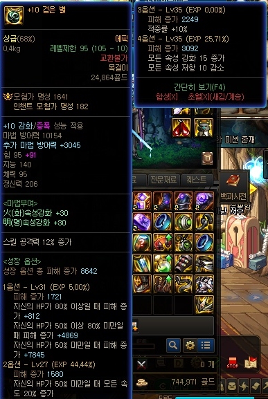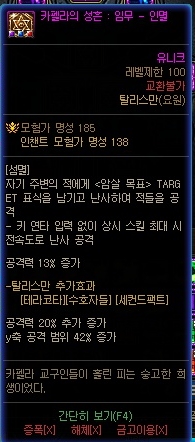 먼저 편린 특수장비들의 옵션들을 보시면!