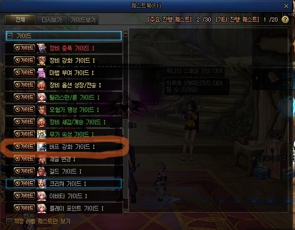 퀘스트북에도 가이드가 있으니 확인하셔도 좋습니다.