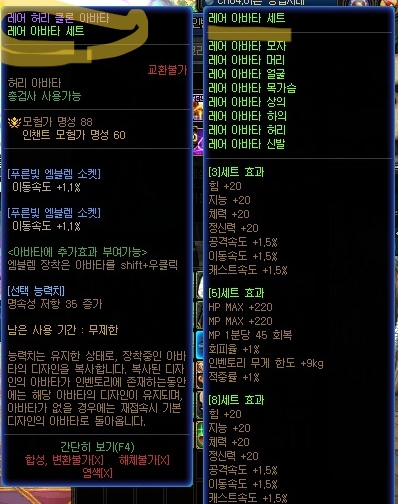 좌측은 내가 안에 입는 내복(?) 버프인 임무시작을