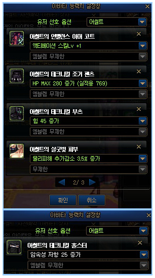 - 어썰트 아바타 능력치 설정창 추천 [허리]