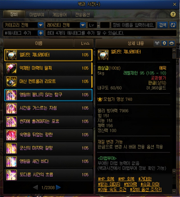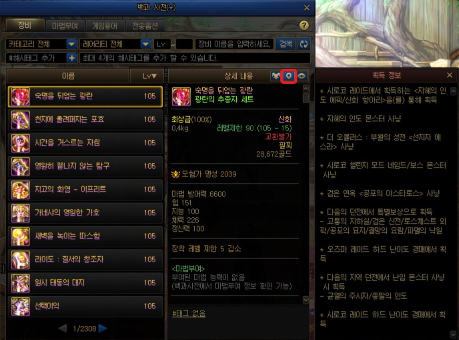 아이템의 드랍처/ 옵션별 아이템 검색이 있습니다.
