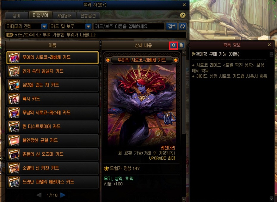 매우 편하게도 카드의 획득처와 옵션별 검색도 있으니 검색해서 간단하게 알아볼수 있습니다. (카드의 시세를 알려주지는 않아요)