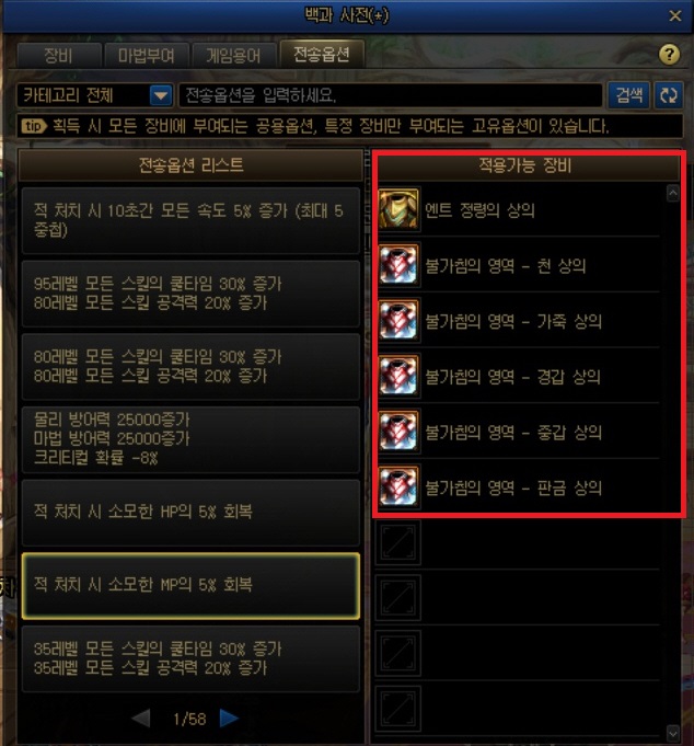 원하는 옵션이 어떤 아이템에 붙는지 알수 있죠.