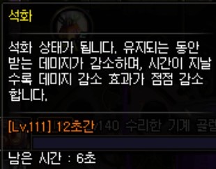 2. 마치 스커드제노사이드를 보는듯한 석화 후 공격을 박고나면 12초경과후 데미지가 들어가며 몹이 죽는 간지.