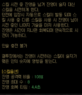 이후 스킬을 다시 입력하면 잔영이 기억한 스킬을 연속 사용한다.