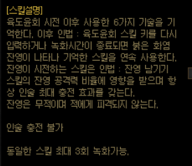하지만 잔영남기기로 스킬을 캔슬하고 육도윤회로 녹화된 스킬들은 모두 인을 다 맺어서 사용이 되니 크게 걱정은 안하셔도 됩니다.
