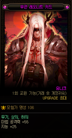 상의,하의-부관 레오나트 (독헤드랑 가격차이도 안나는데 지능,마공 5 높습니다.)