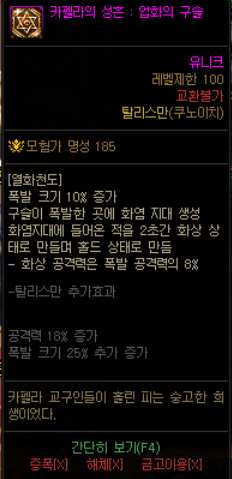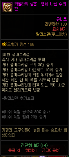 풍마수리검의 몹몰이가 염무개화와 바꿔치기의 딜이 안들어가는 위치로 옮겨버려서 사용할 수 없는 비운의 탈리스만입니다.