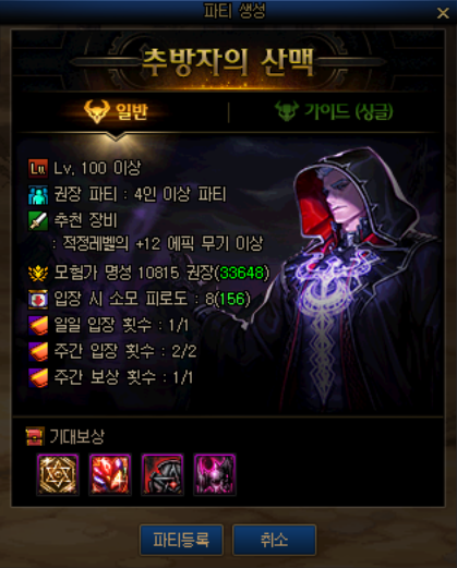 추방자의 산맥채널에서 진행할 수 있으며 주1회 보상이기 때문에 입장은 2번이지만 주1회만 가시면 됩니다.