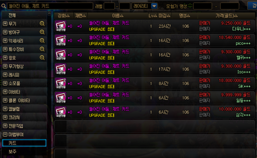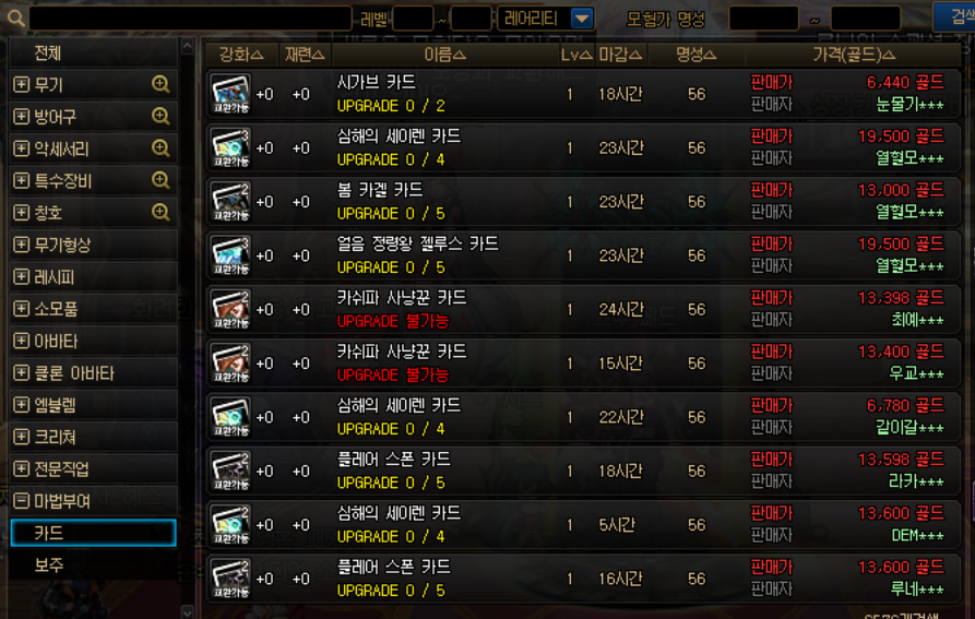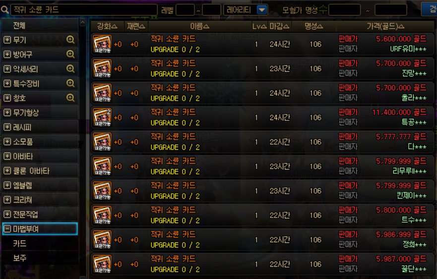 마법부여에 필요한 재료들도 경매장에서 구매 가능합니다.