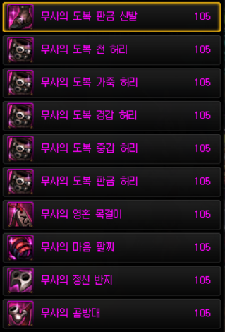 근원무기을 주력으로 사용하신다면 상의를 쉐도우블랙 슈트를 쓰셔도 됩니다.