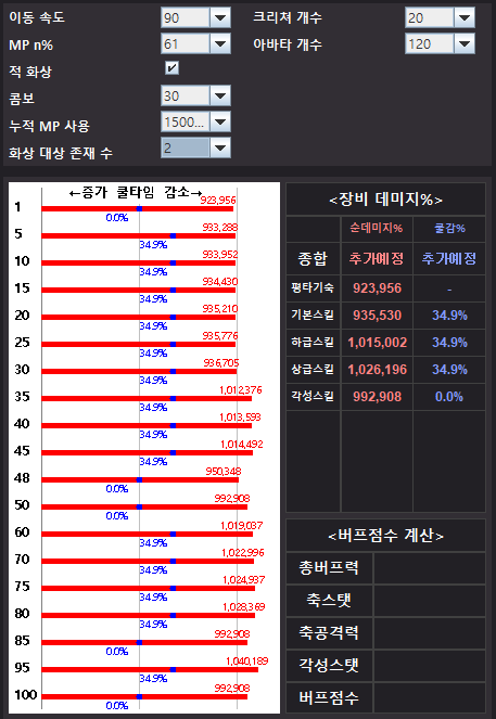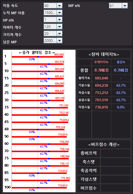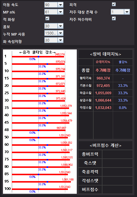 장점 : 높은 쿨타임 감소, 잡몹방에서 강함, mp 넉넉함, 콤보수x