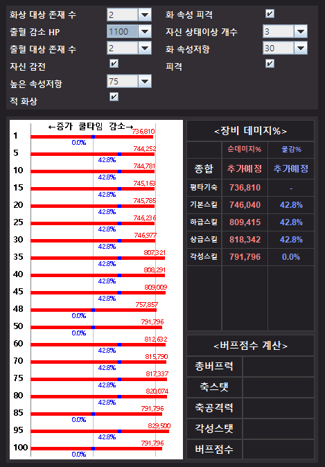 단점 : 보스에서 낮은 대미지, 화상 지연딜, 화속성고정