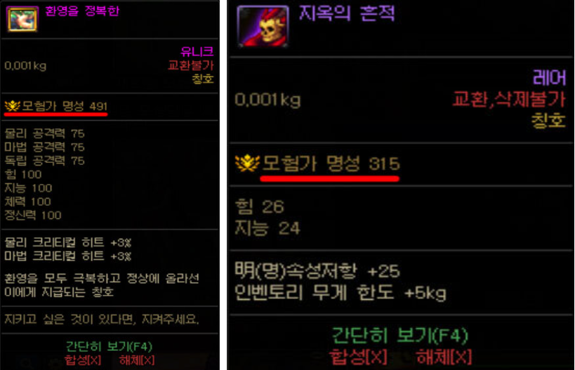 엘븐미어 100단계 시즌 보상인 칭호 상자에서 나오는 칭호는 명성이 491로 다른 업적 보상 칭호들보다 모험가 명성이 176 높습니다. 웬만한 패키지의 일반 칭호에 해당하는 명성이며 따라서 부캐릭터 명성을 올려야 하는데 칭호를 구매해줄 돈이 없다면 엘븐미어 시즌 보상 칭호 상자를 주면 도움이 됩니다.
