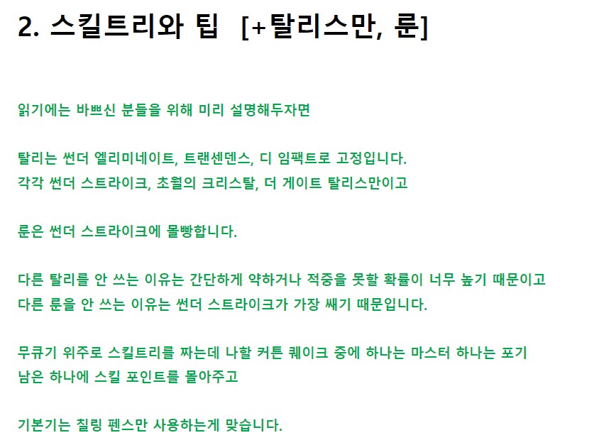 스킬포인트랑 TP를 효율적으로 배분하는거의 이점이 생각보다 괜찮더군요.