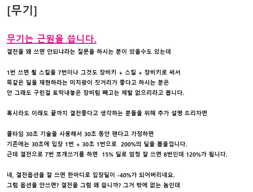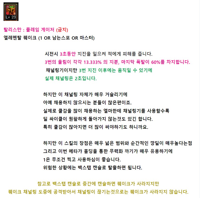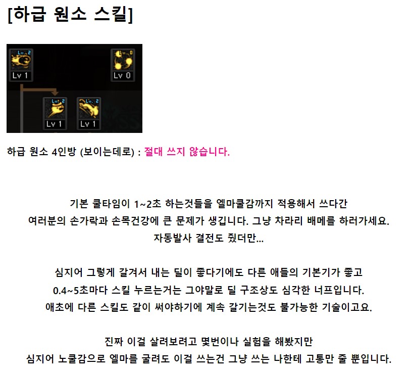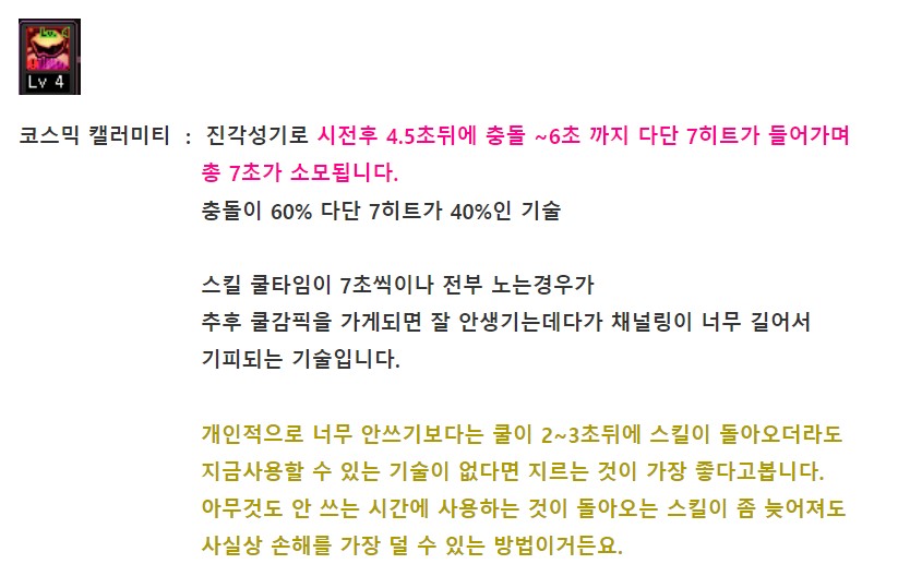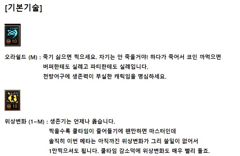기본기 쿨이 1~3초대고, 그거를 계속 갈겨야하다보니 일단 공략에서 추천은 안드립니다.